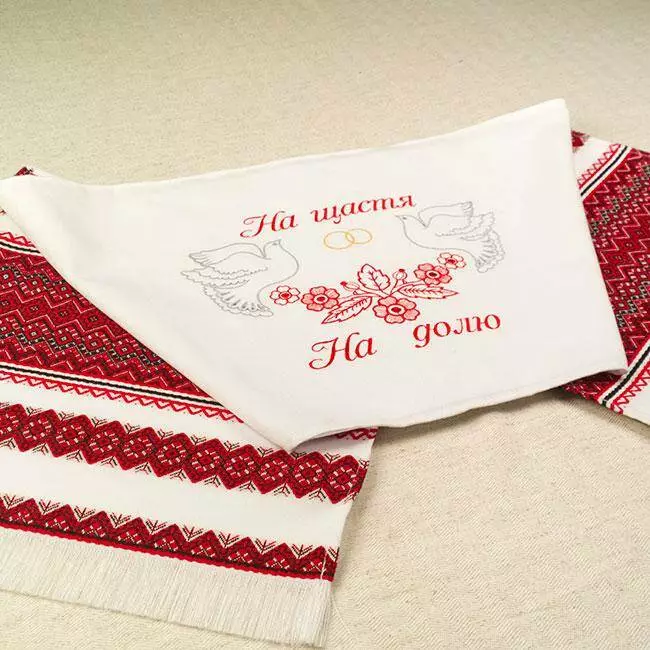 Весільний рушник "На щастя, на долю" часто використовується в українських обрядах.