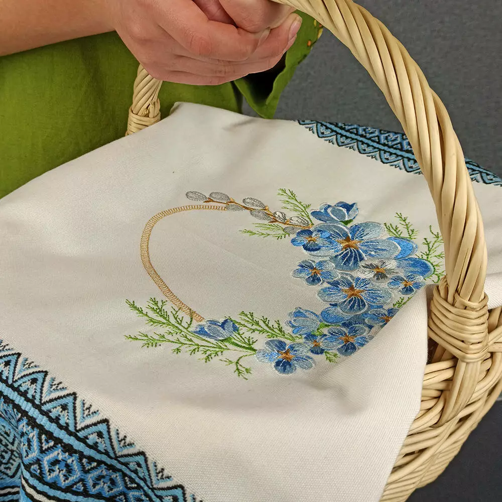 Запашні крокуси та ніжні вербові «котики» - тендітні провісники весни й пробудження. Якісна вишивка блискучими нитками на тлі білосніжного полотна тканого (не фарбованого) рушника дарує радість оновлення та бадьорість. Таким рушничком зручно накрити великодній кошик або прикрасити кімнату на Пасху. Святкуйте з вірою та вдячністю!
