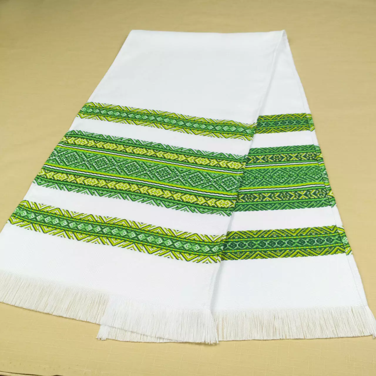 Традиційний зелений рушник, який широко використовується в українських обрядах.
