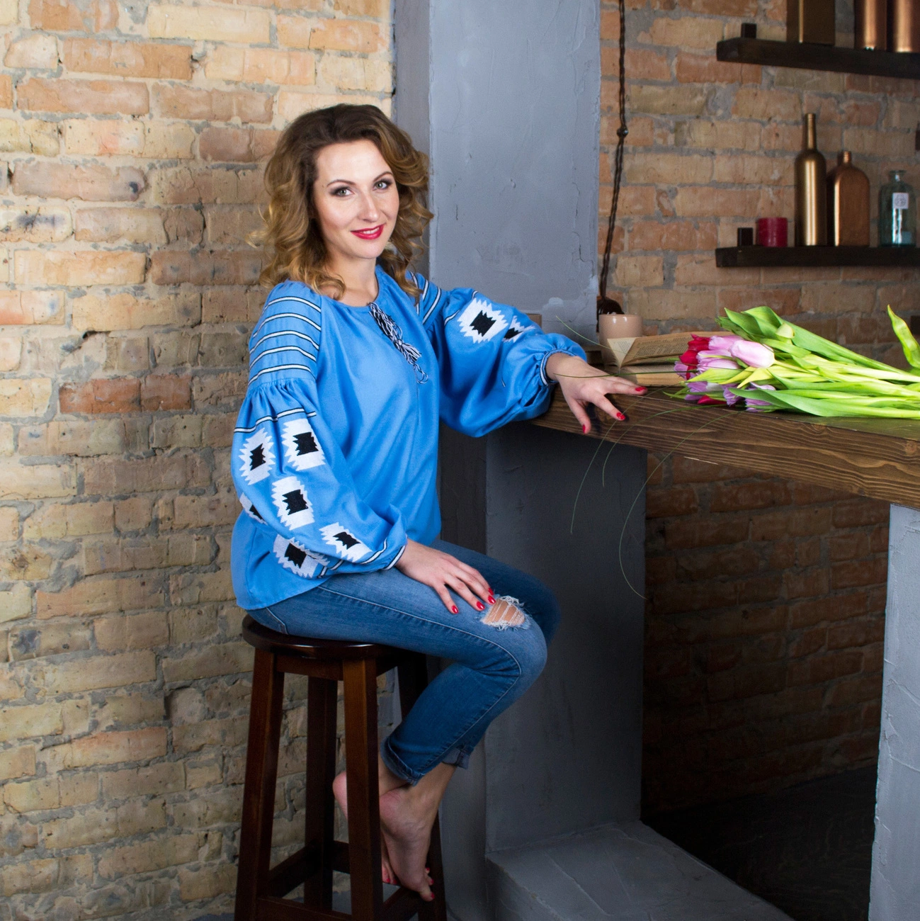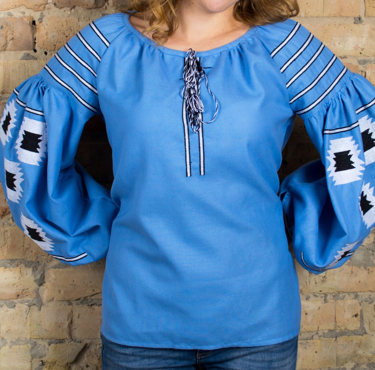 Жіноча стильна вишиванка виконана біло-чорними нитками, які