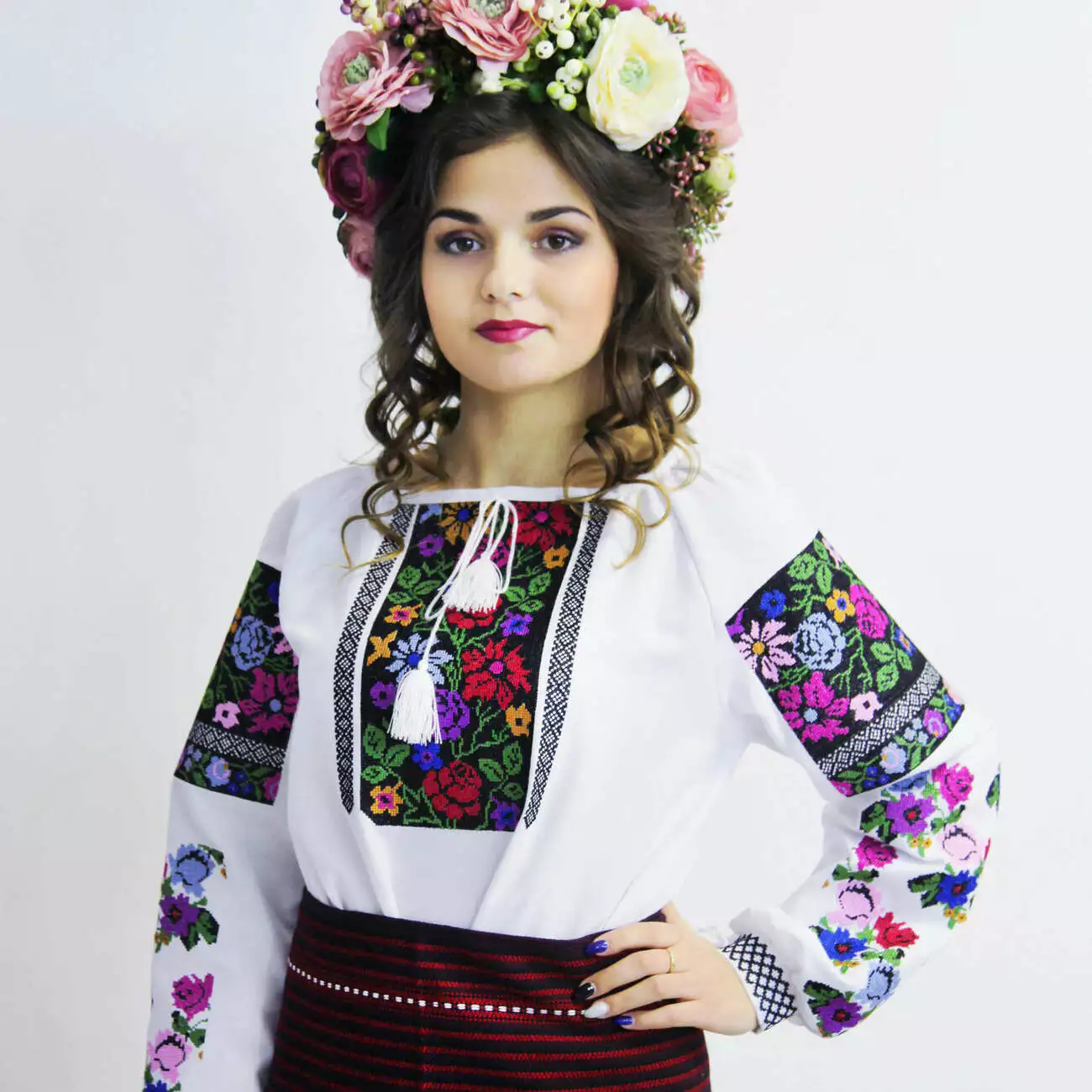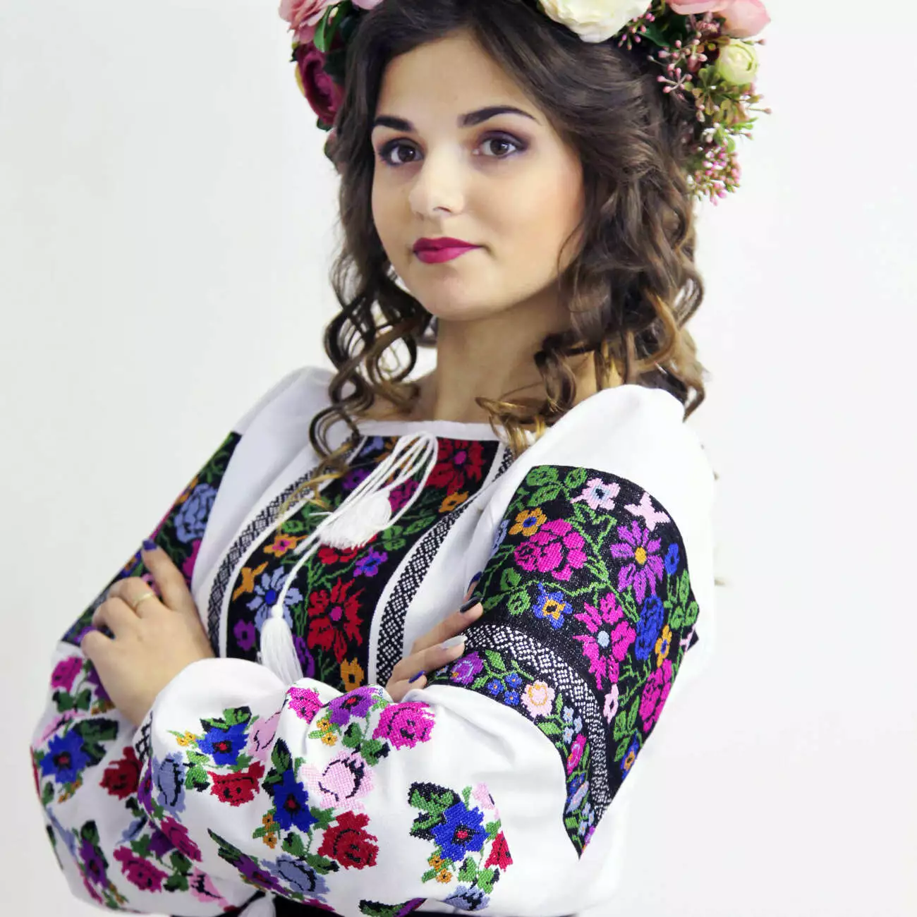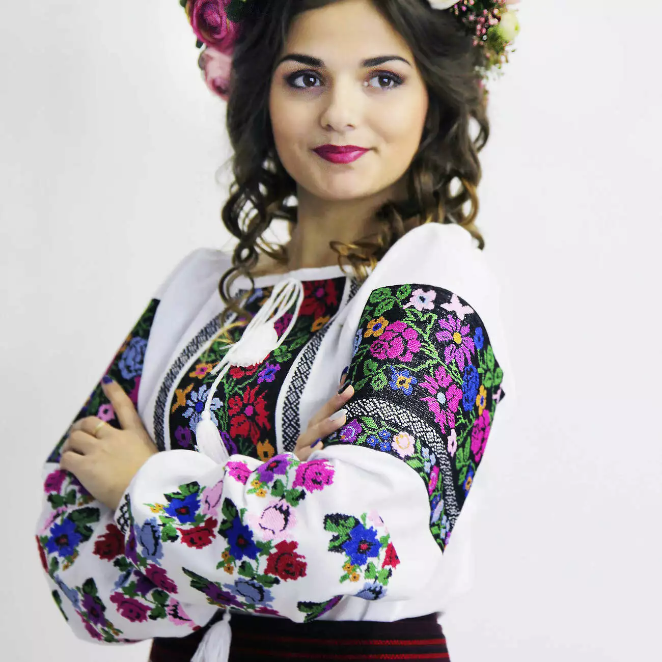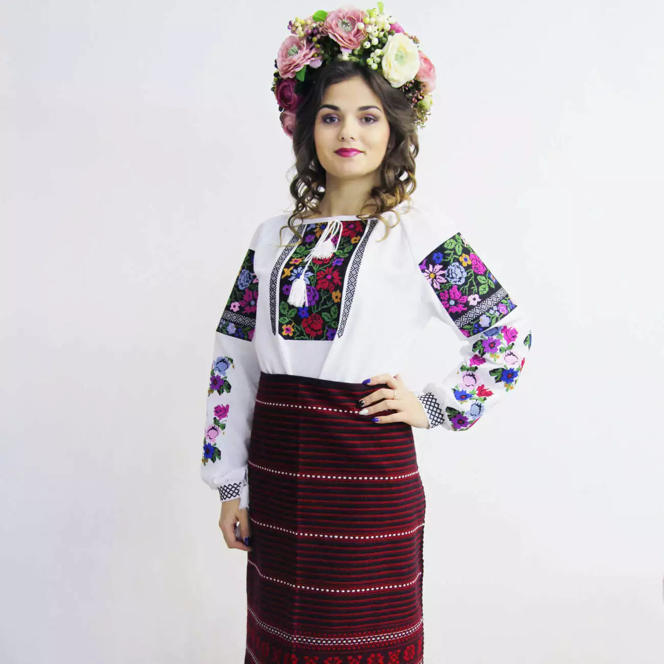 Жіноча вишиванка вишита яскравими кольоровими нитками на