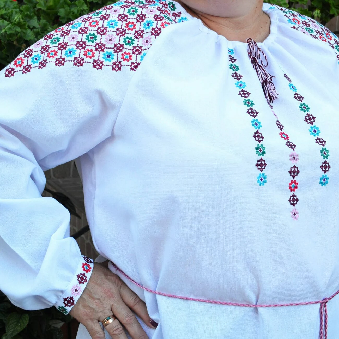 Жіноча вишиванка вишита яскравими кольоровими нитками на