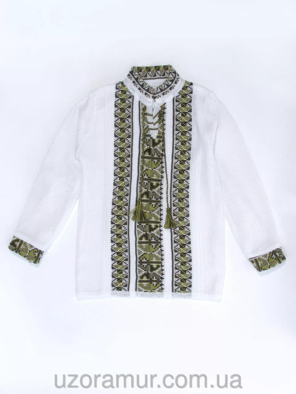 Вишиванка на хлопчика з зеленим візерунком х/б