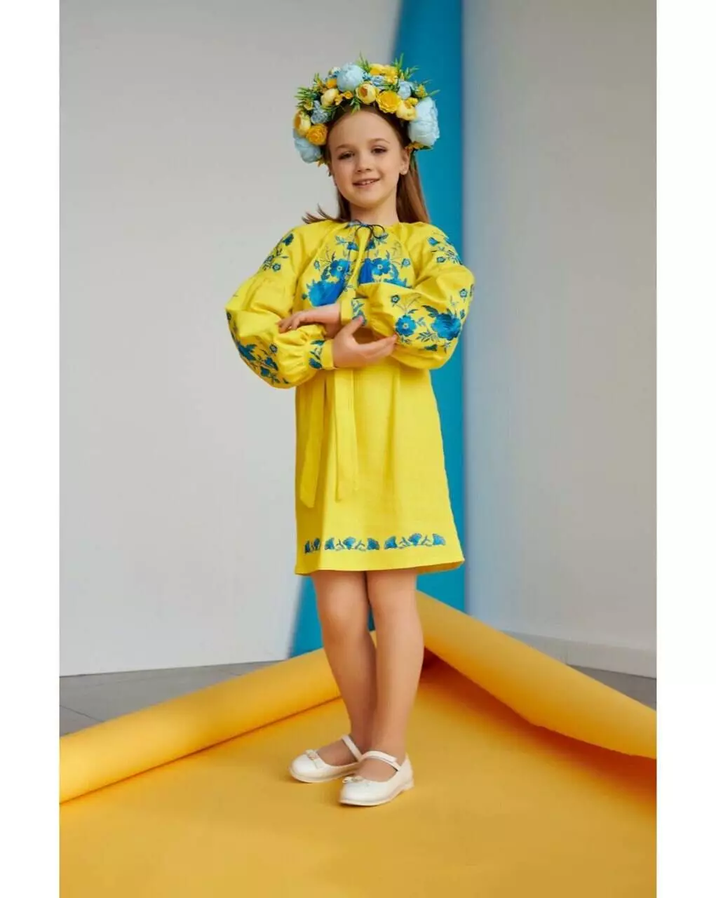Вишиванка СУКНЯ -ВИШИВАНКА дів. жовта- блакитним квіти 9832506 Україна
