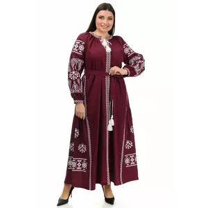Сукня-вишиванка вільного фасону, має об'ємні рукави, а також поясок для підкреслення талії.
