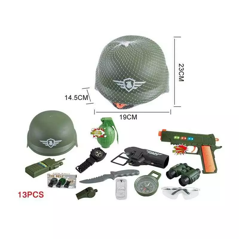 Військовий набір CH 222 A2 (48/2) пістолет у кобурі, шолом, окуляри, бінокль, годинник, компас, жетон, граната, ніж, у сітці