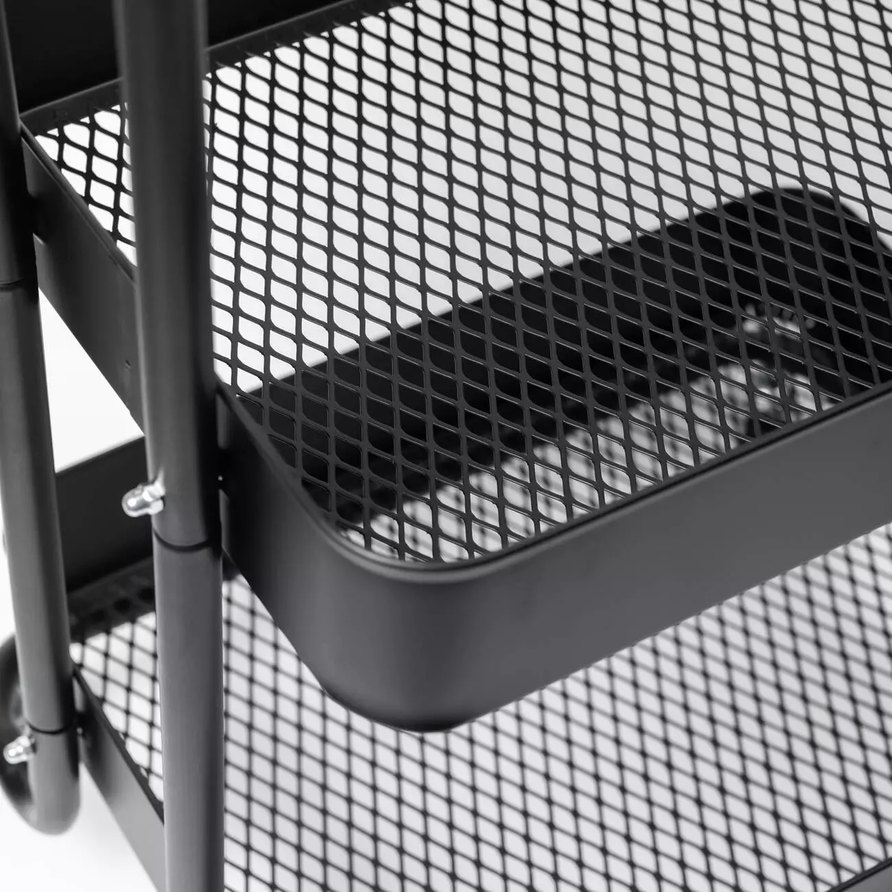 Міцний металевий каркас витримує навантаження до 10 кг на ярус, а завдяки коліщатам візок легко переміщати. Два колеса мають стопори для надійної фіксації.