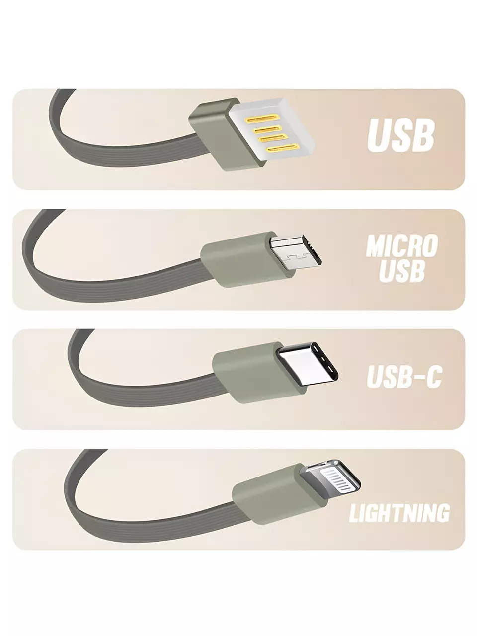 • Встроенные кабели: Micro-USB, Lightning и USB-C