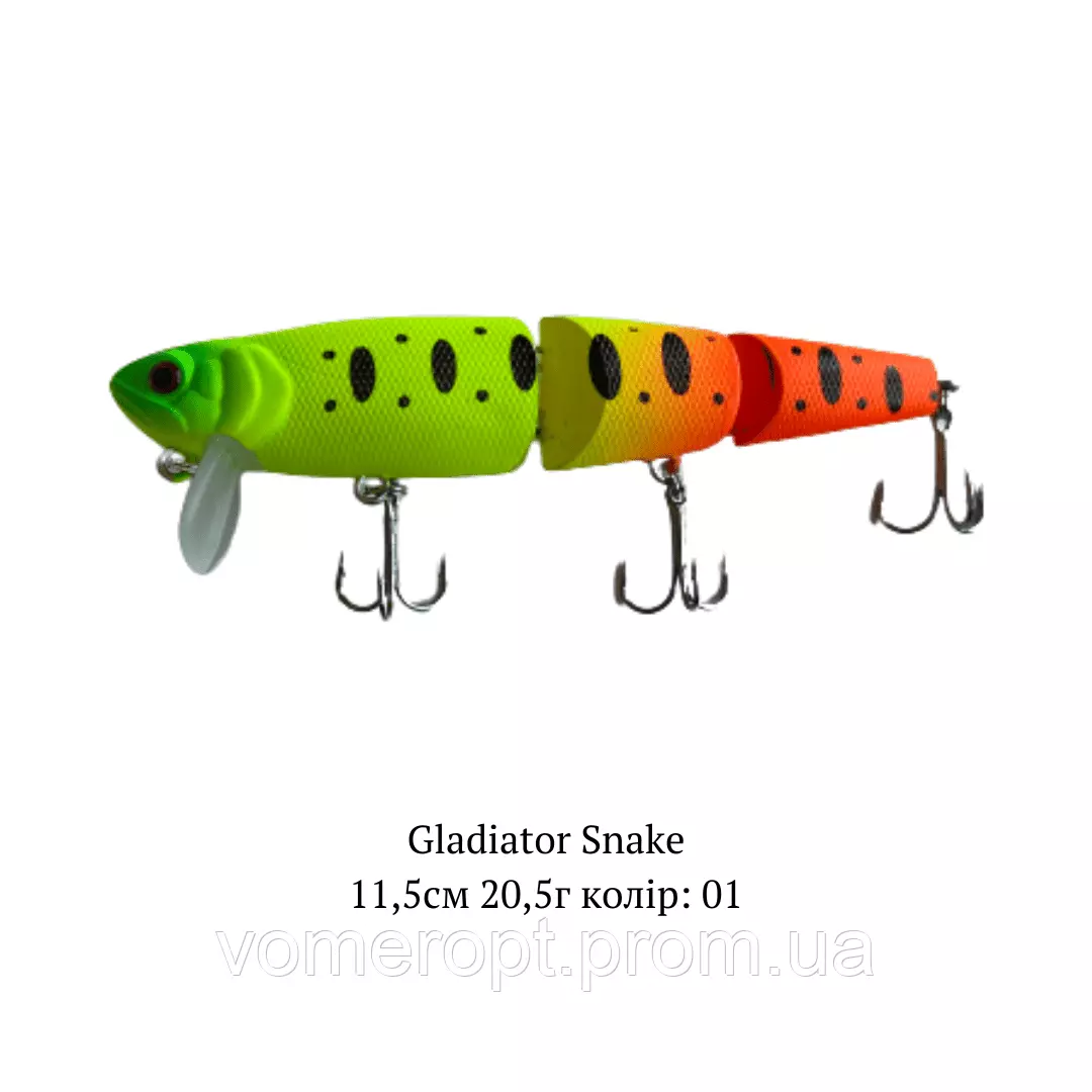 Воблер GLADIATOR "SNAKE+" 0-0,5м 20,5г 11,5см Колір 01