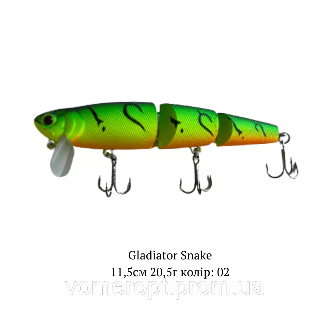 Воблер GLADIATOR "SNAKE+" 0-0,5м 20,5г 11,5см Колір 02