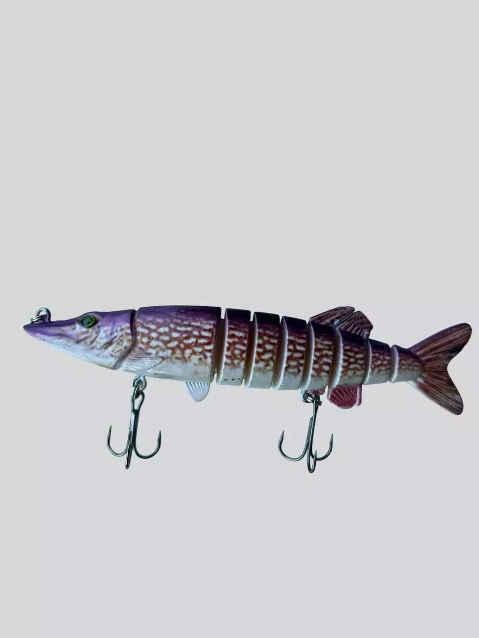 Потужний сегментований воблер із щучим забарвленням. Швидко заглиблюється, має стабільну гру навіть на повільній проводці, підходить для пошуку активної щуки та судака.