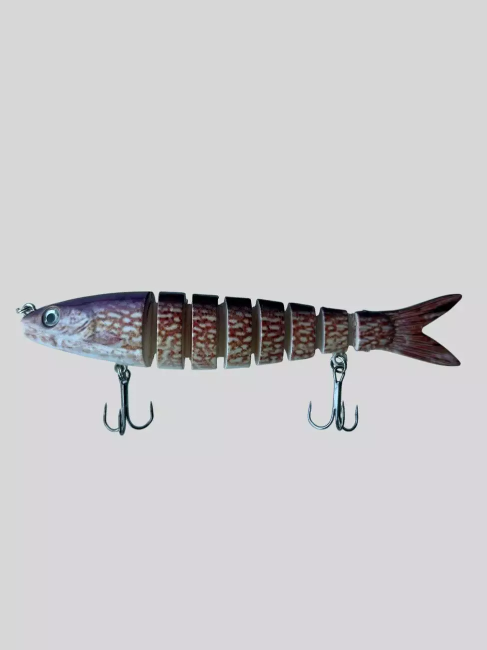 Сегментований тонучий воблер з природною хвилястою грою. Імітує поранену рибку, чудово працює по щуці, судаку та великому окуню. Оснащений трійниками Mustad.