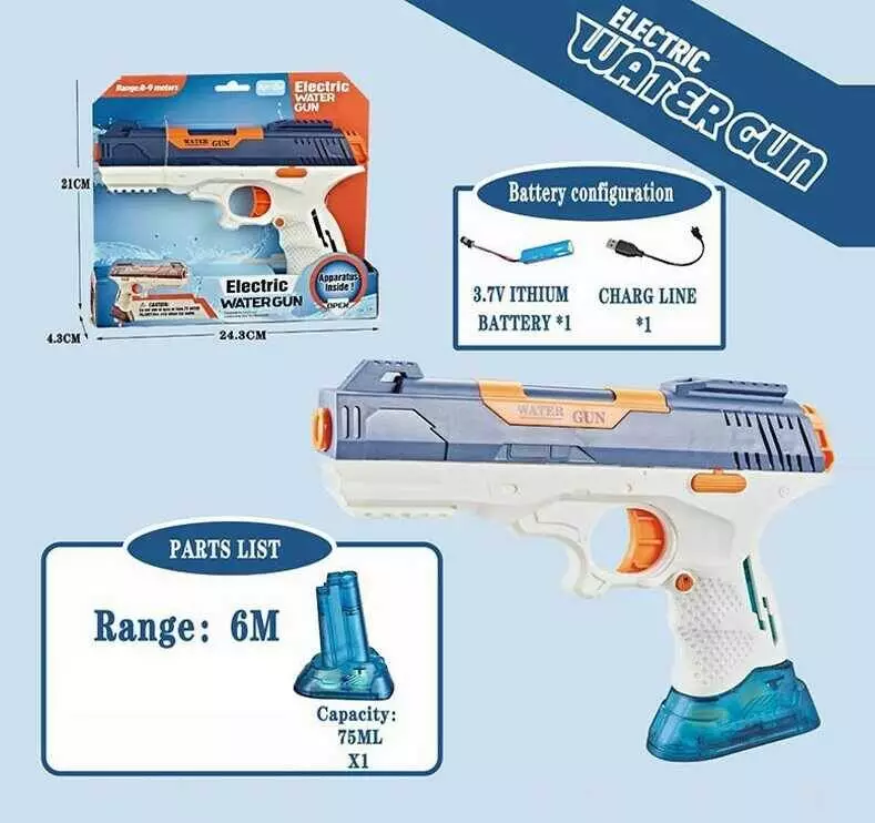 Водний пістолет QS 811-202 (72/2) довжина 23 см, автоматичний принцип, знімний резервуар, об’єм 75 мл, акумулятор 3.7 V, в коробці