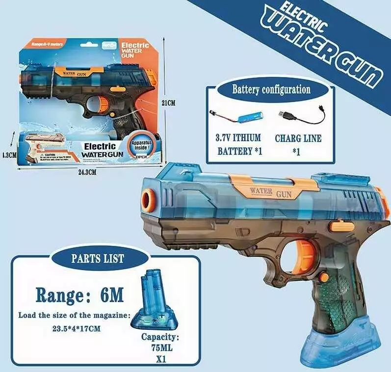 Водний пістолет QS 811-204 (72/2) довжина 23 см, автоматичний принцип, знімний резервуар, об’єм 75 мл, акумулятор 3.7 V, в коробці