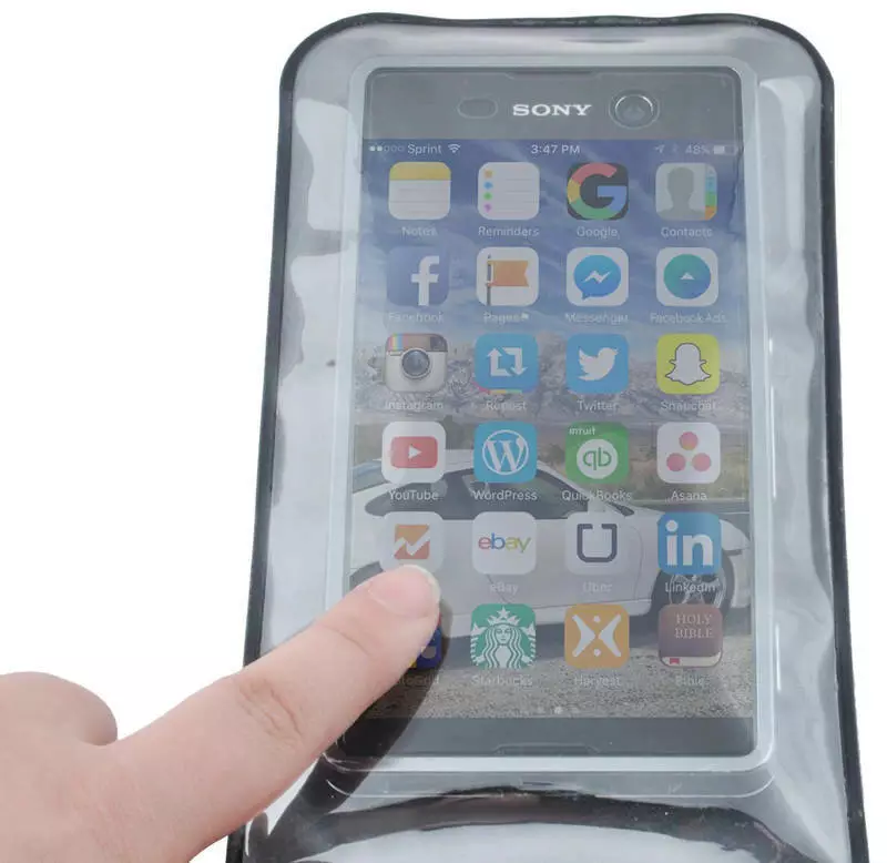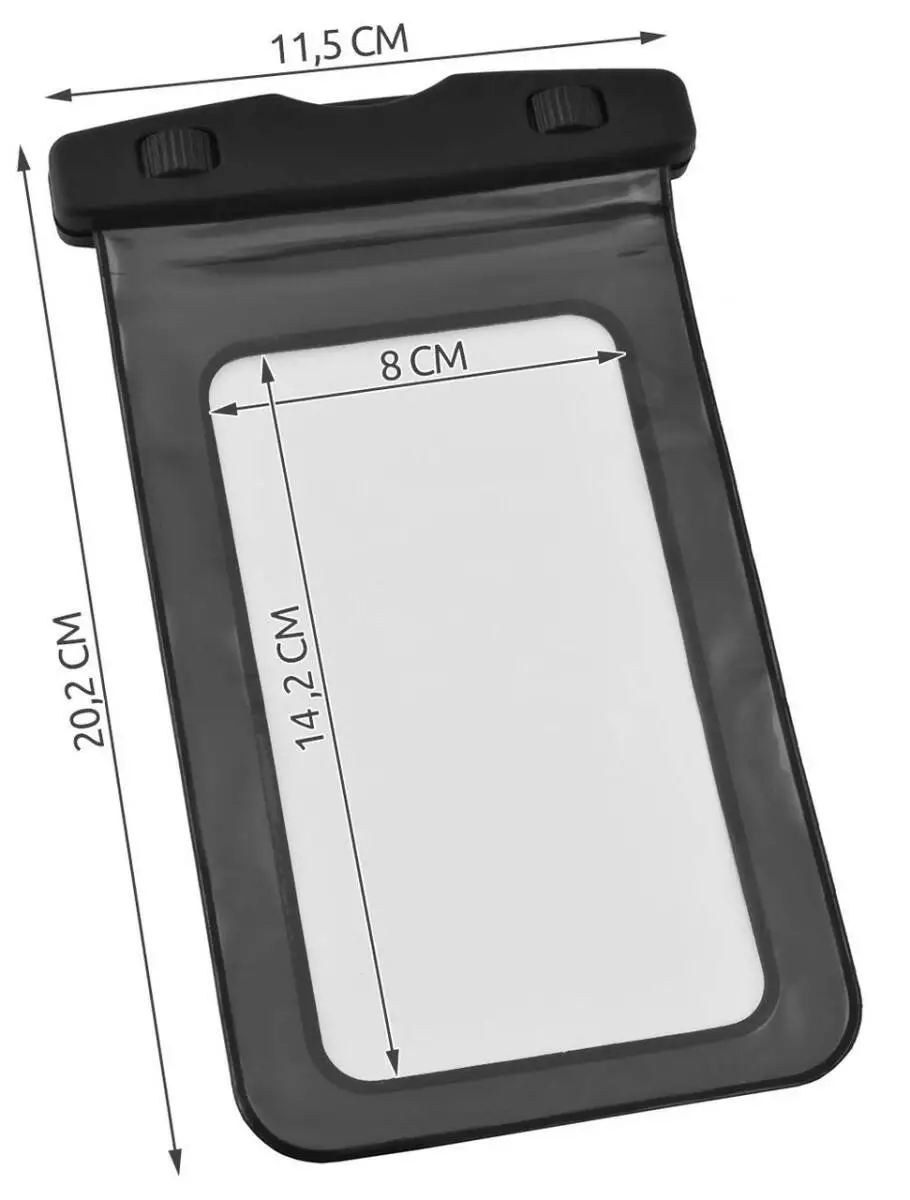 Практичний водонепроникний чохол для телефону ідеально захистить ваш смартфон від води та вологи, наприклад, під час бігу чи їзди на велосипеді під дощем. Ідеально підходить для басейну, вітрильного спорту, плавання та пляжу. Призначений для смартфонів з діагоналлю екрана до 5,5 дюймів.