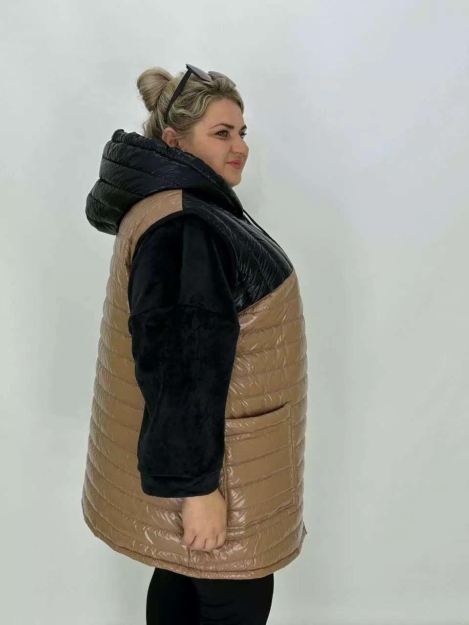 Водонепроникний стьобаний жилет з капюшоном "Монклер" на блискавці з кишенями