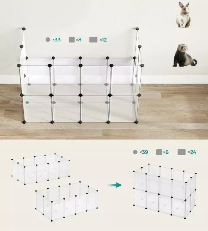 кролики, тхори або шиншили, збільште висоту стінок. Для цього
