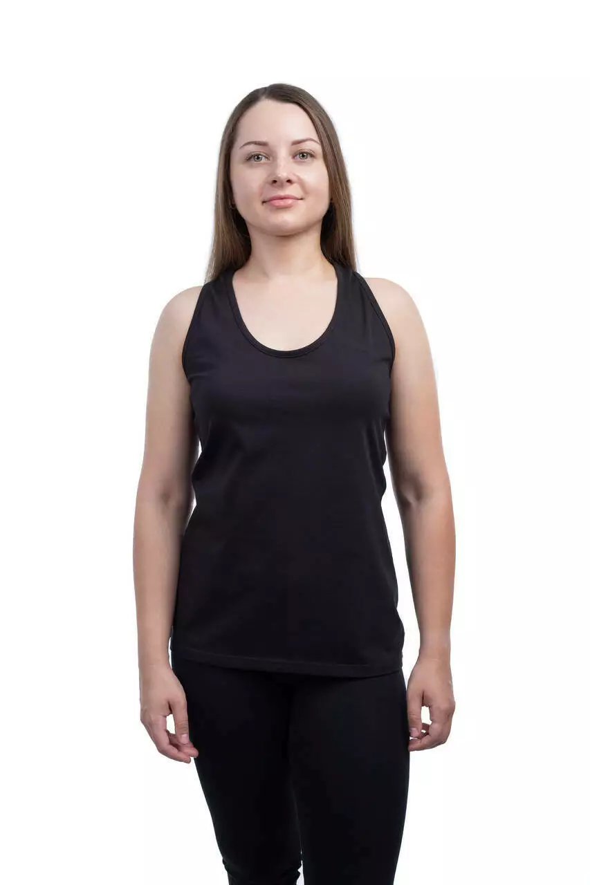 Жіноча майка-борцовка – м'яка, дихаюча та еластична, виконана з бавовни та 5% еластану. Натуральна тканина чудово вбирає вологу, довго залишаючись сухою та забезпечуючи комфорт протягом дня. Базова модель на широких бретелях з U-подібним вирізом та вільним кроєм створює ідеальний баланс між комфортом та сучасним стилем.
