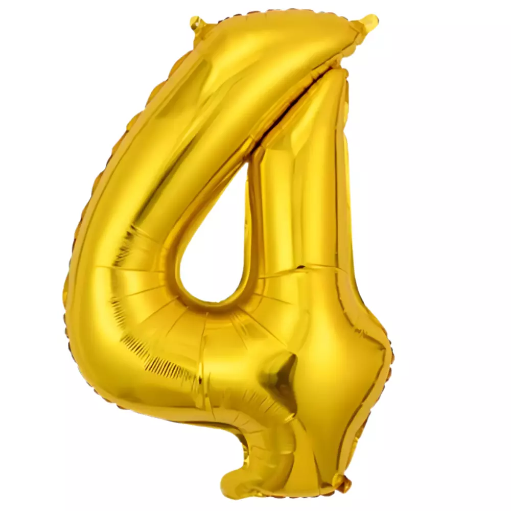 Фольгированный шар в виде цифры «4» золотого цвета — эффектный и