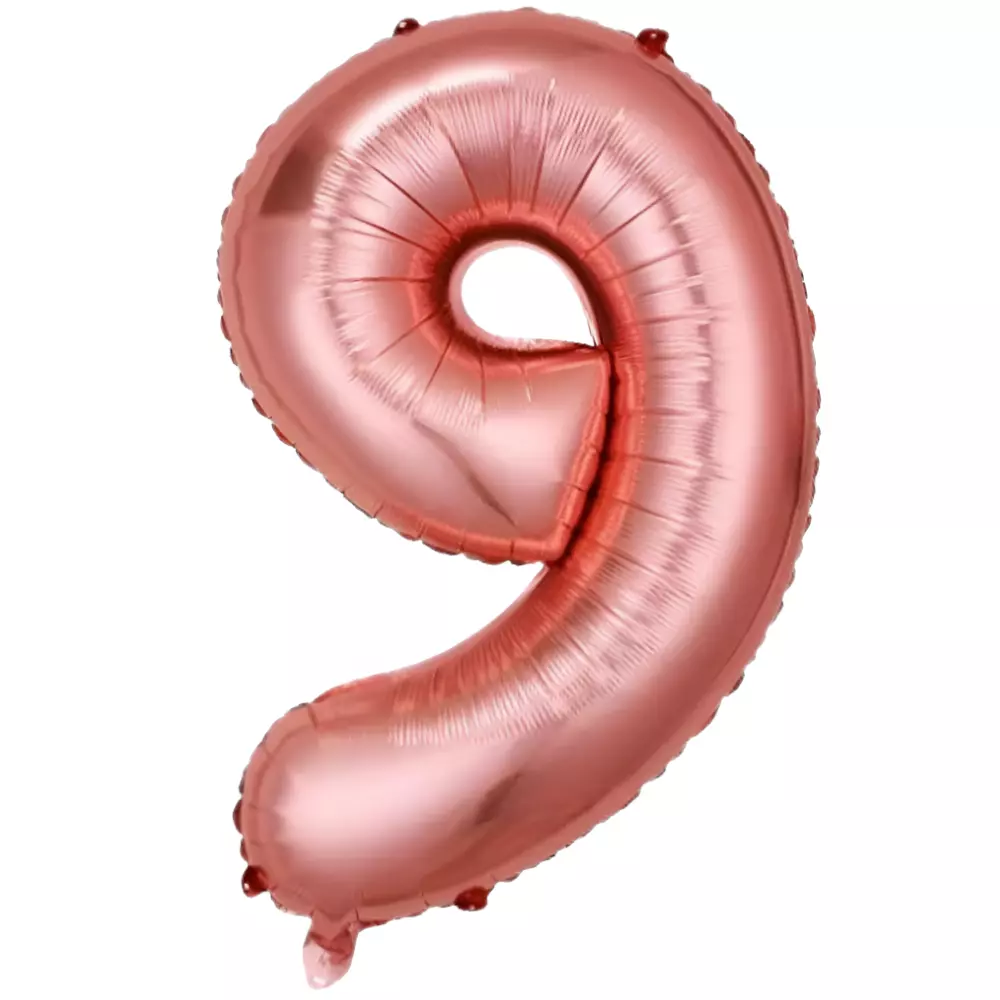 Фольгированный воздушный шар в виде цифры 9 розового золотого цвета