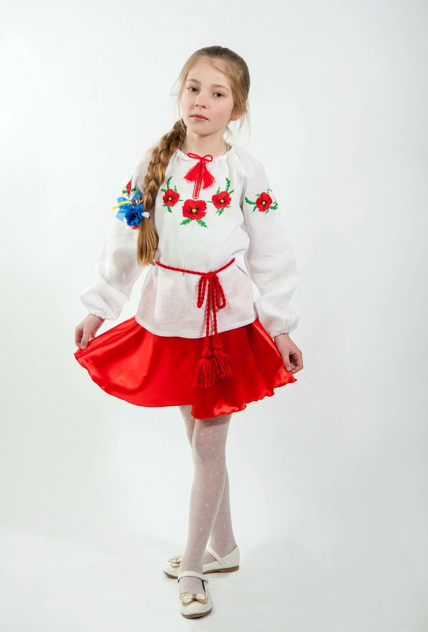 Детская вышиванка для девочки с красными маками основные