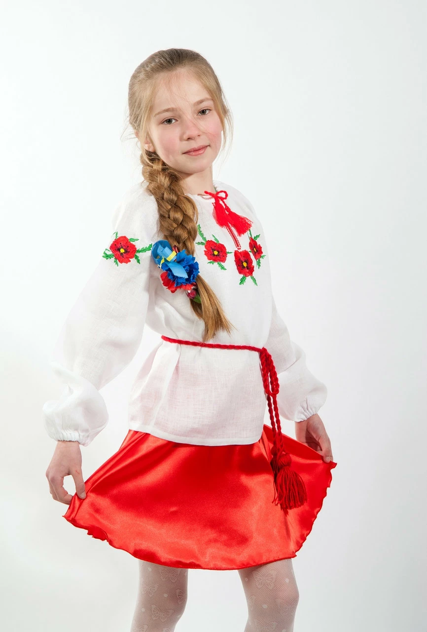 Купить вышиванку для девочки "Мак" можно от 110-146 размера
