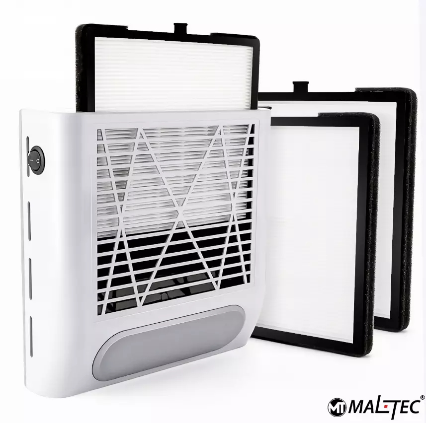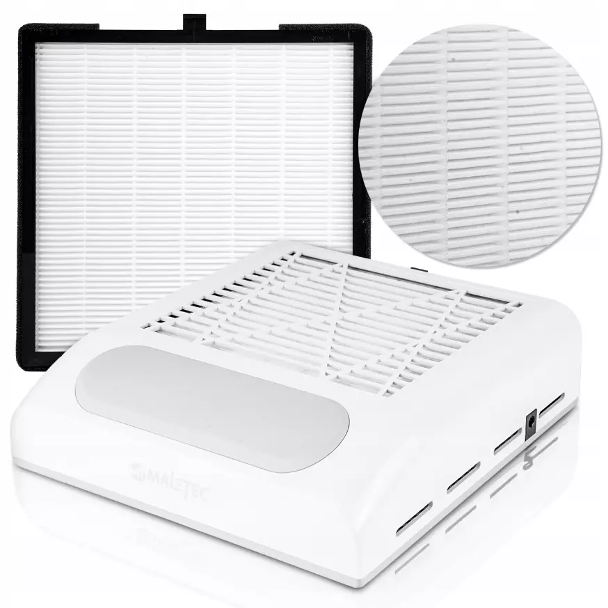 Прибор оснащен высокоэффективной всасывающей турбиной, благодаря чему ногтевая пыль попадает непосредственно в специальный фильтр, препятствующий ее выходу наружу. Картриджный пылевой фильтр изготовлен из специальной фильтровальной бумаги.