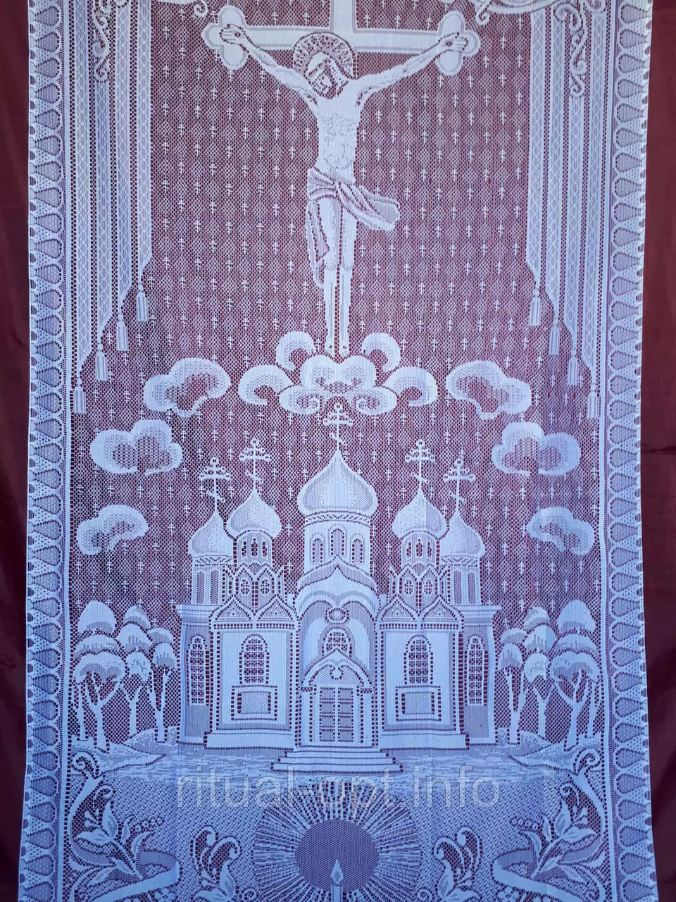 Якісне "тюлевое" ритуальне покривало.Висока щільність нитки.Тип тканини гіпюр.Виробник Україна.Колір білий.Розмір 215 на 110 див.