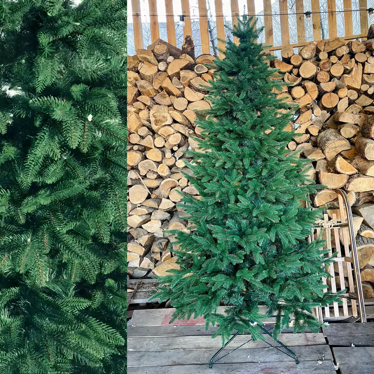 зовнішні литі гілки з поліетилену (3D-хвоя) точно повторюють форму живої ялини, надаючи реалістичного вигляду.