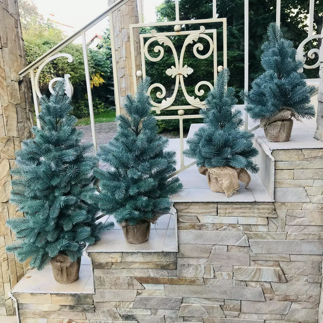 Встановлена у горщик, прикрашений мішковиною, з обважнювачем