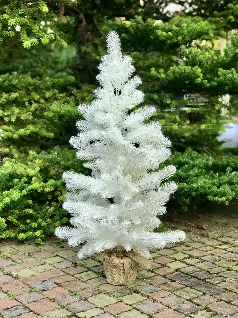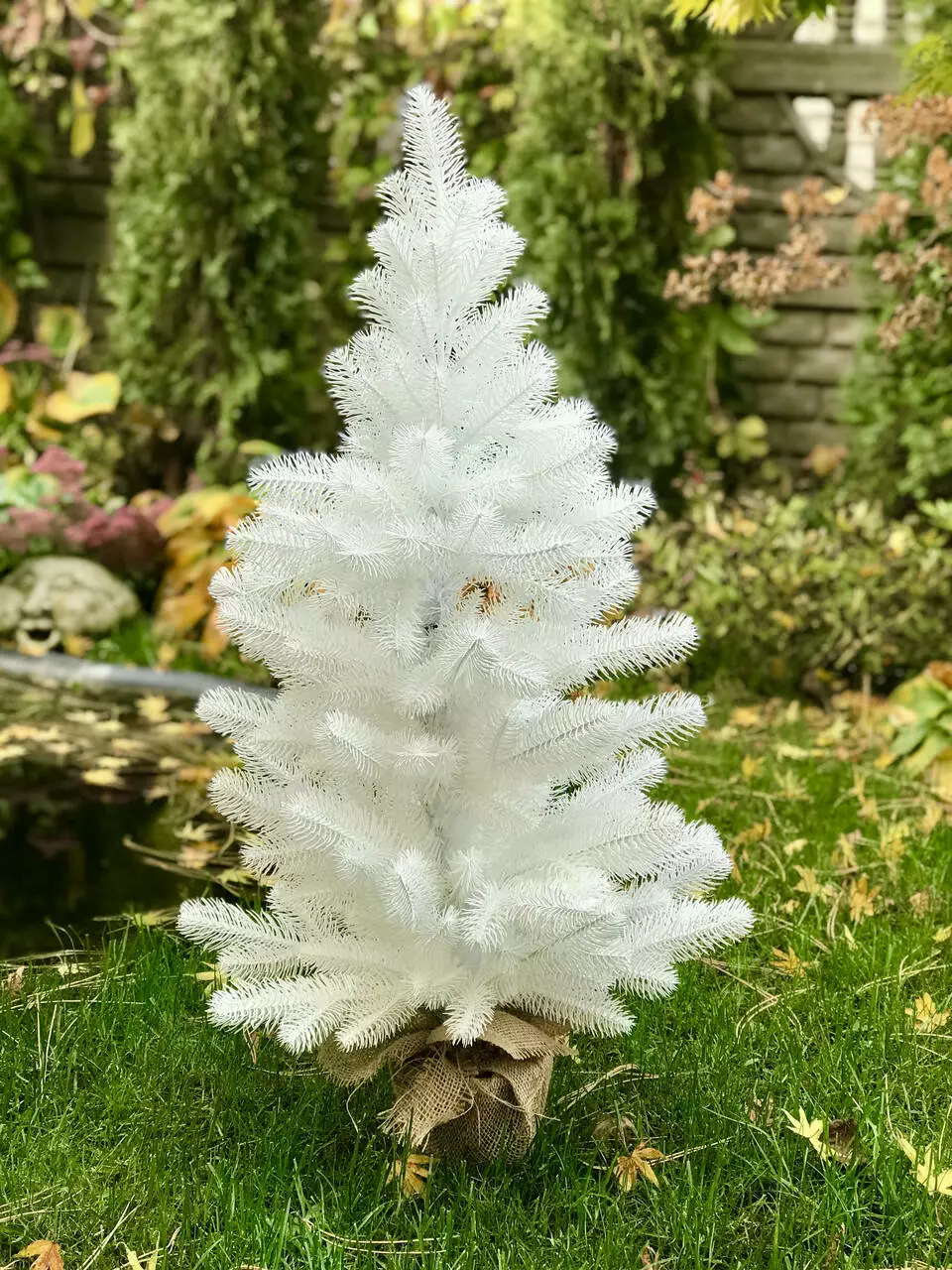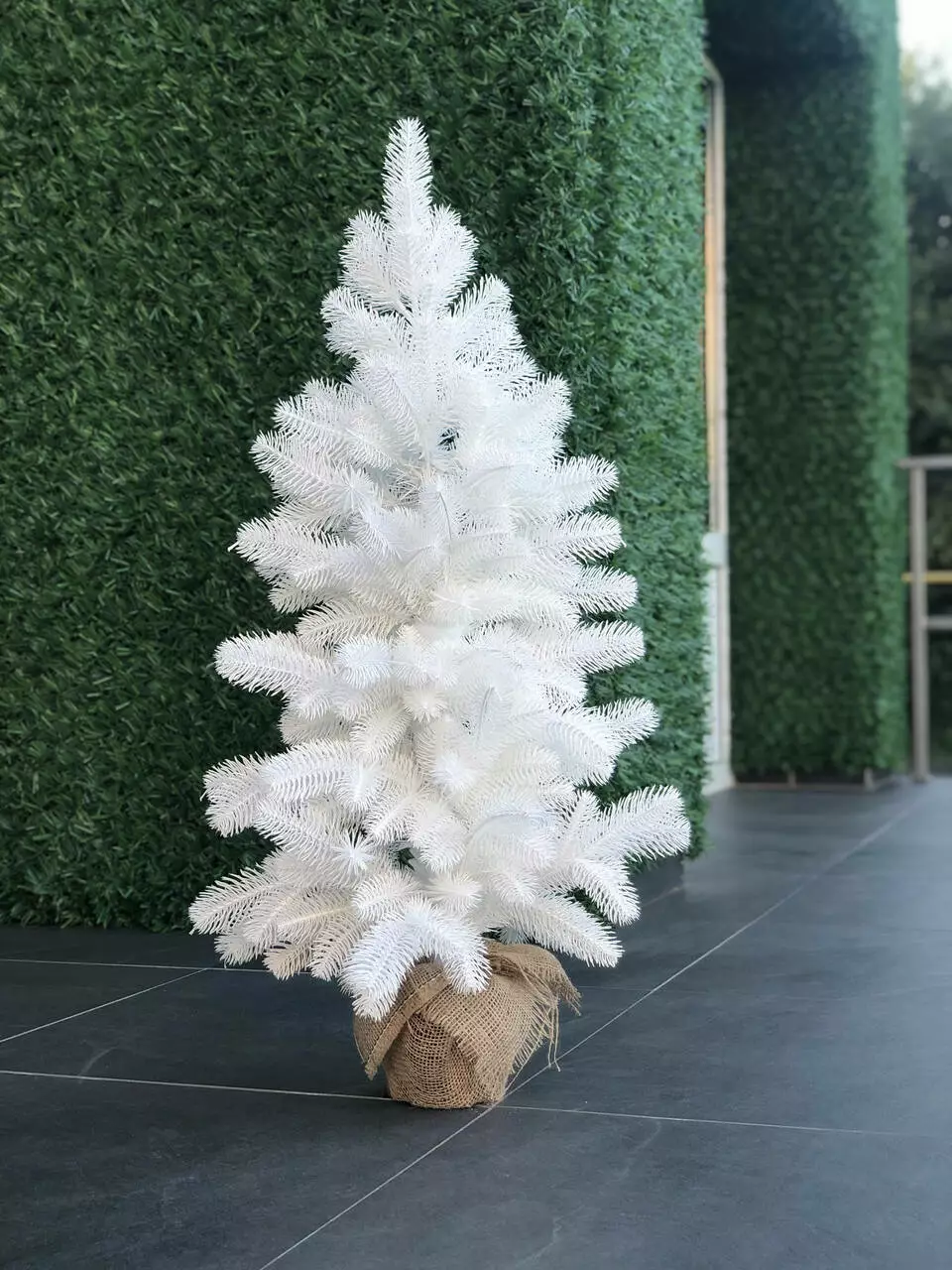 Компактна штучна лита ялинка виглядає ошатно навіть без додаткових прикрас. Всі голочки - литі, точна 3D версія хвої живої ялинки. Встановлена у горщик, прикрашений мішковиною, з обважнювачем всередині - для захисту від перекидання.