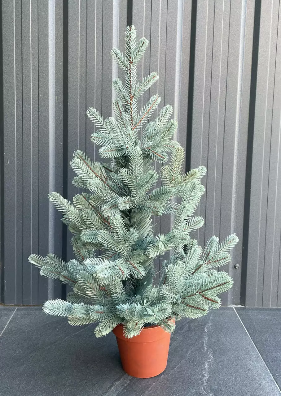 Ця унікальна ялинка має густу конічну крону, схожу на конус, з вершиною, що спрямована вгору, і гілками, що ростуть від стовбура до вершини рослини, створюючи витончену структуру стовбура. Використання високоякісного пластику та інноваційної технології лиття роблять хвою та гілки надзвичайно реалістичними.