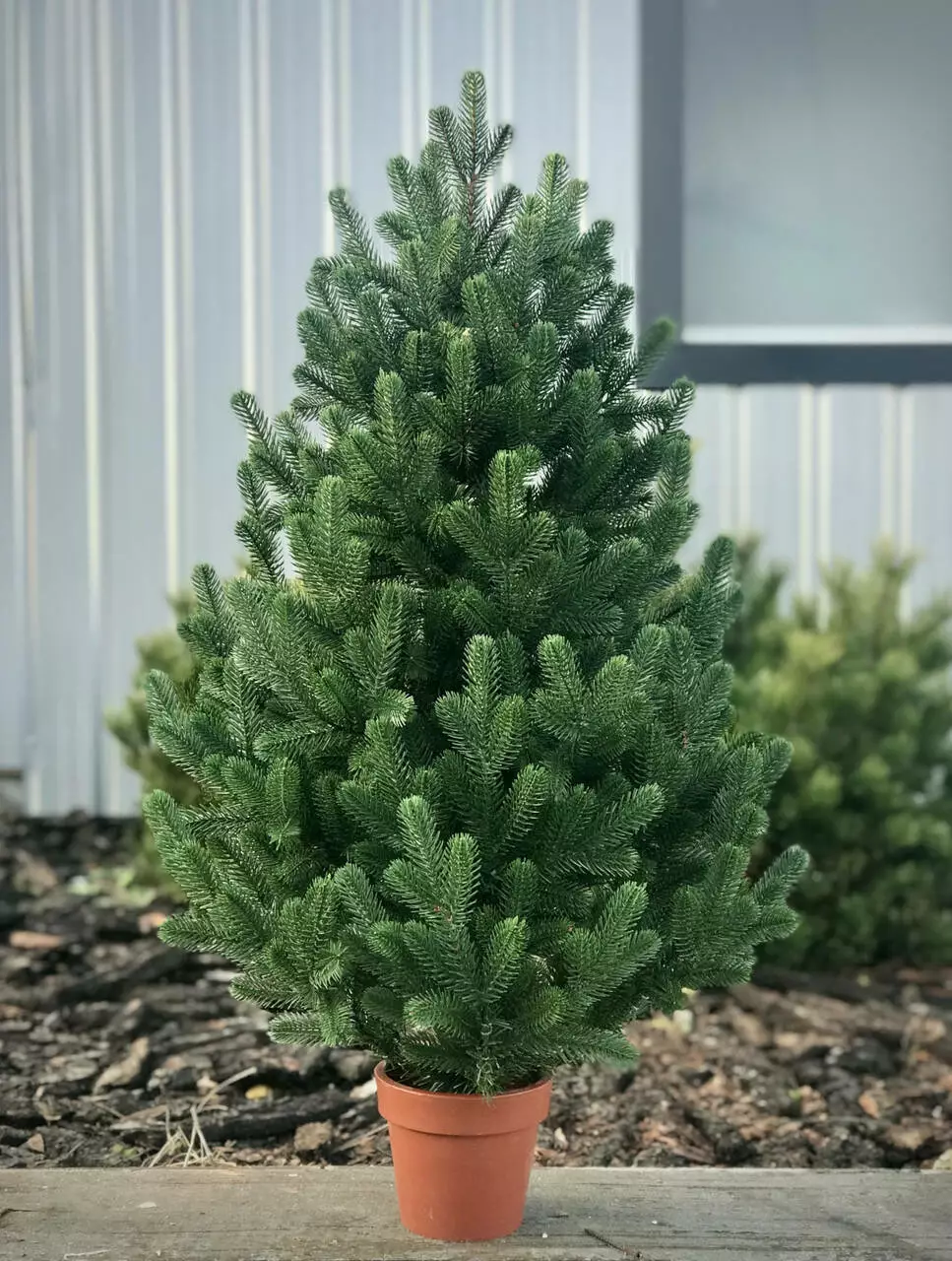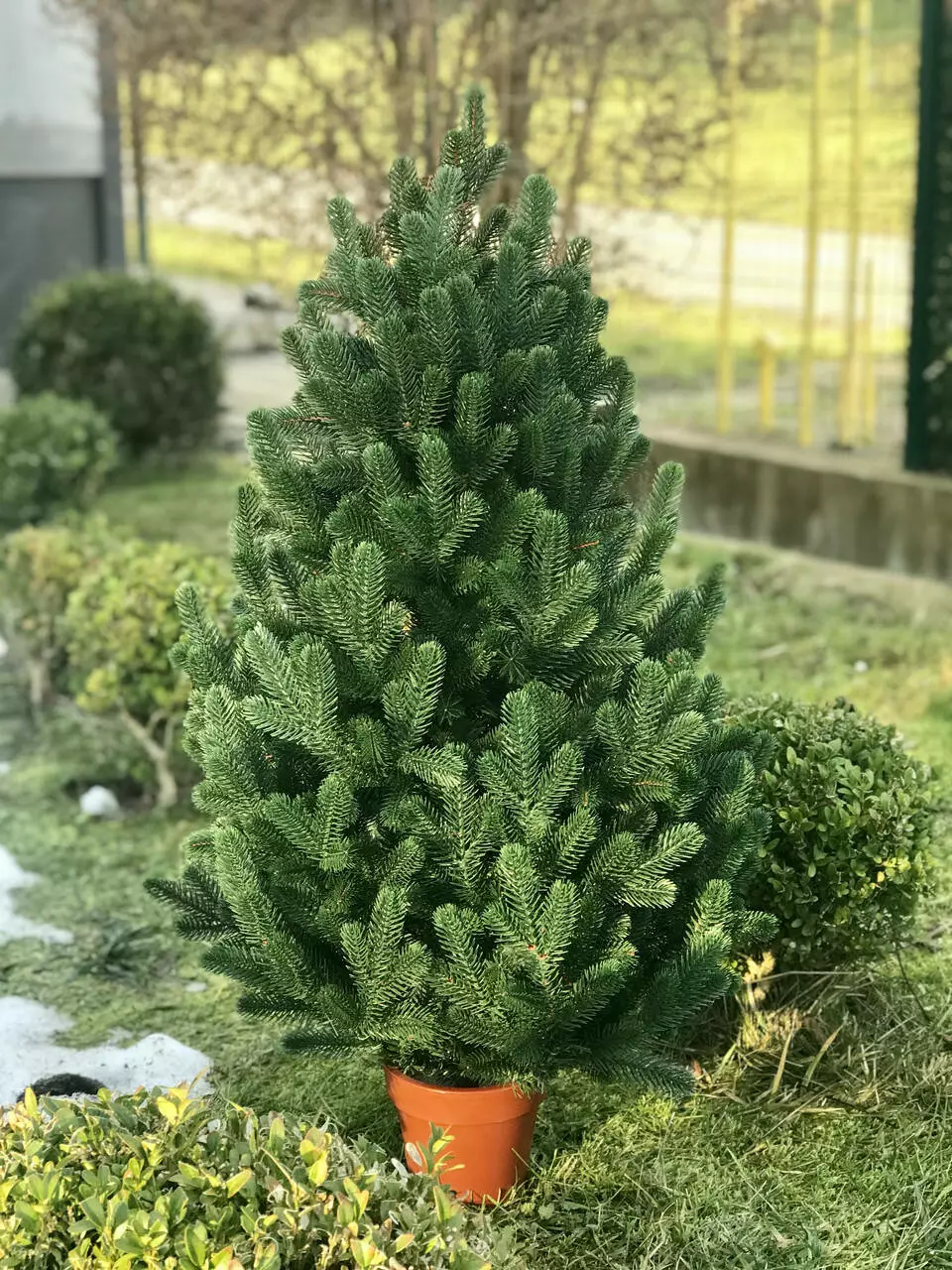 Ця унікальна ялинка має густу конічну крону, схожу на конус, з вершиною, що спрямована вгору, і гілками, що ростуть від стовбура до вершини рослини, створюючи витончену структуру стовбура. Використання високоякісного пластику та інноваційної технології лиття роблять хвою та гілки надзвичайно реалістичними.