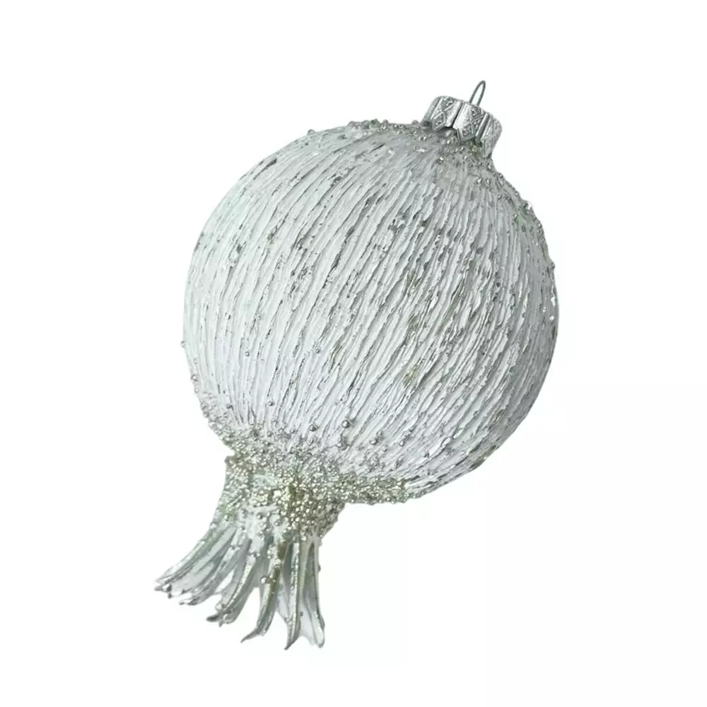 Ялинкова іграшка Гранат 8 см із золотою поталлю, білий