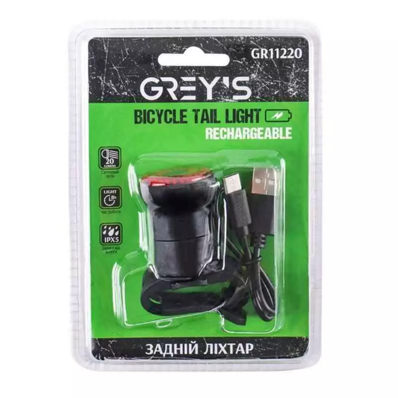 Задний фонарь на велосипед 20 светодиодов 20Lm Grey's 400mAh IPX4 до 8 часов работы (GR11220)