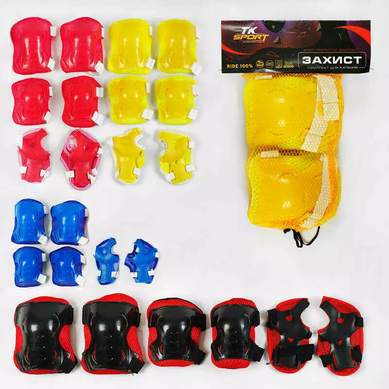 Захист C 64611 (100) "TK Sport", 4 кольори, налокітники, наколінники, зап`ястя, у сітці, ВИДАЄТЬСЯ ТІЛЬКИ МІКС ВИДІВ