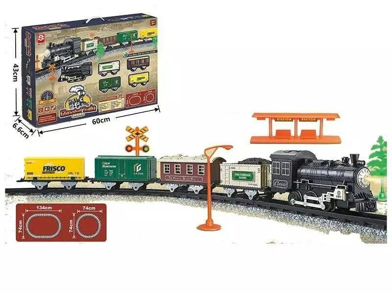 Залізниця 3162 (12) 28 елементів, локомотив, 4 вагони, звуки, підсвічування, муляжі оточення, в коробці