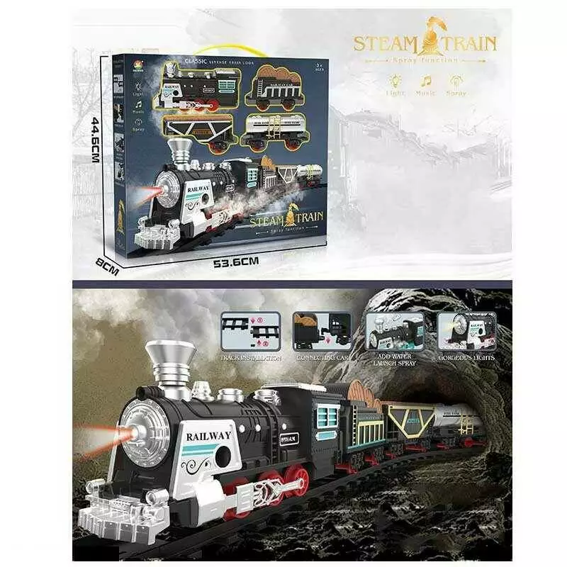 Залізниця 699-25 A (10) на батарейках, звук, підсвічування, парогенератор, локомотив+3 вагони, в коробці