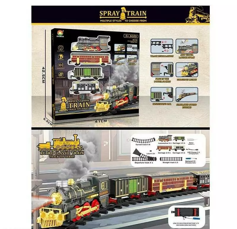 Залізниця 699-28 A (12) світлові та звукові ефекти, акумулятор 3.7 V, USB кабель, парогенерація, автоматичний принцип роботи, в коробці
