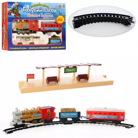 Залізниця 7013 блакитний вагон, довжина 282 см, дим, муз., світло, кор., бат., 48-29,5-7 см.