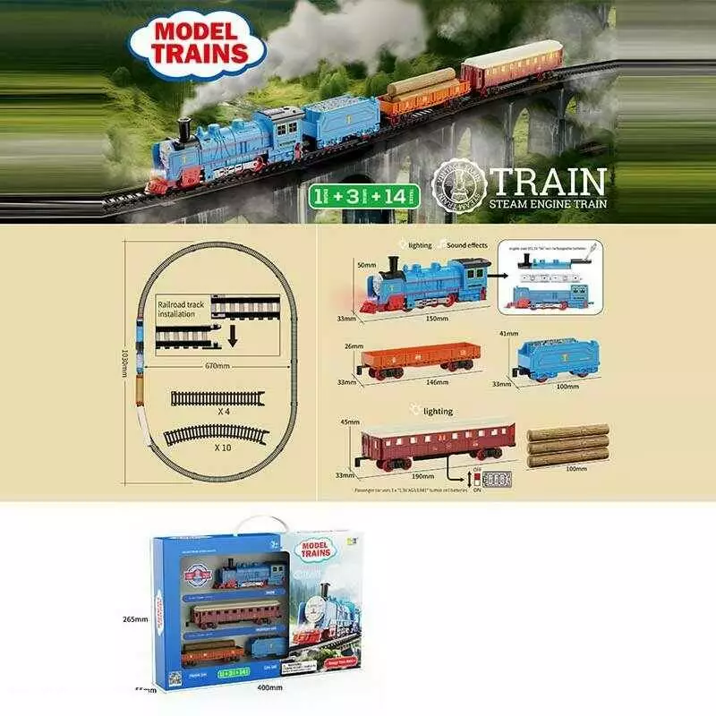Залізниця HS 8017 B (36) 18 елементів, локомотив, 2 вагони, звуки, підсвічування, в коробці