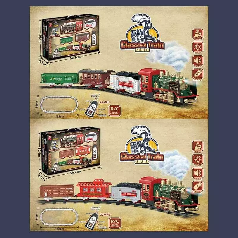 Залізниця на радіокеруванні 3095 A/B (12) 2 види, радіокерування, пульт 27 MHz, звук, підсвічування, парогенератор, локомотив+3 вагони, декорації, в к