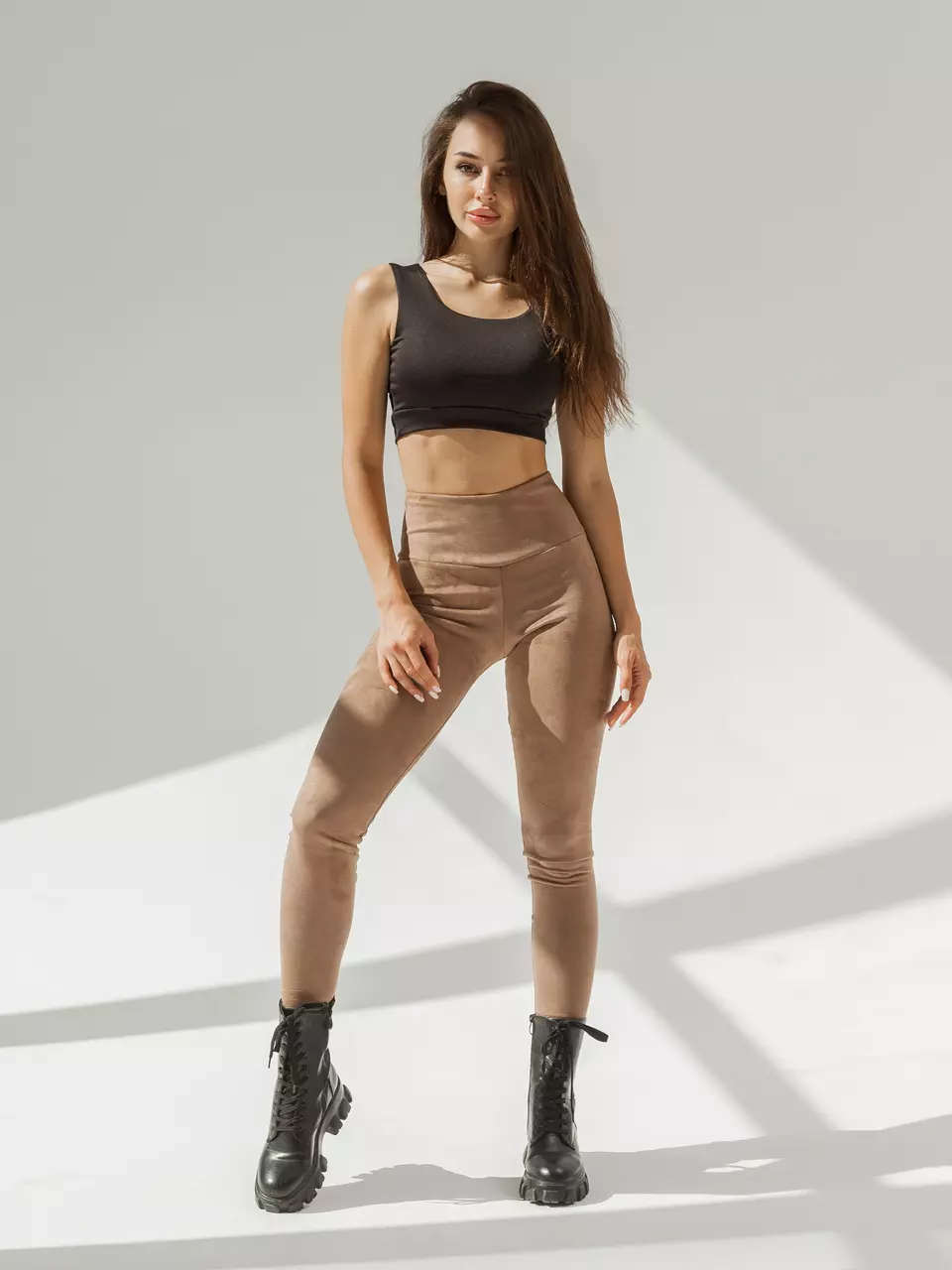 Стильні жіночі облягаючі легінси з еко - замші. Ідеальний варіант для повсякденного модного лука. Максимально приємний і м'який матеріал подарує вам відчуття комфорту. Модель на високій посадці з широкою лінією припливного пояса. Крій, що облягає відмінно сидиться по фігурі, підкреслюючи довжину і красу ніг.