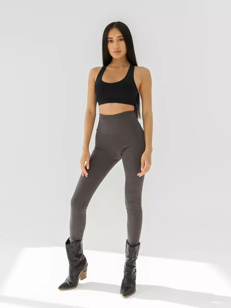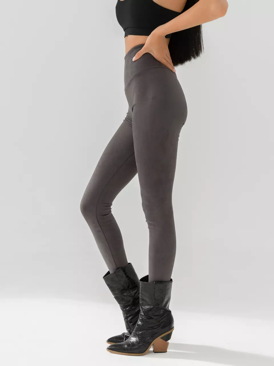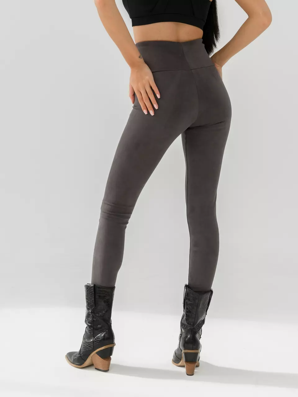 Стильні жіночі облягаючі легінси з еко - замші. Ідеальний варіант для повсякденного модного лука. Максимально приємний і м'який матеріал подарує вам відчуття комфорту. Модель на високій посадці з широкою лінією припливного пояса. Крій, що облягає відмінно сидиться по фігурі, підкреслюючи довжину і красу ніг.