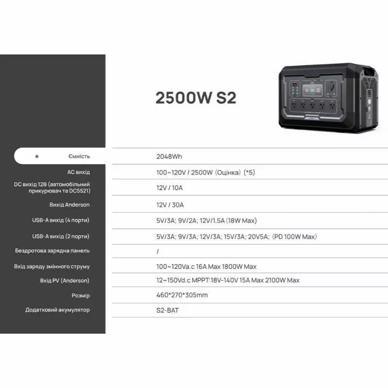 • Ємність зарядної станції, кВт/год: 2.048