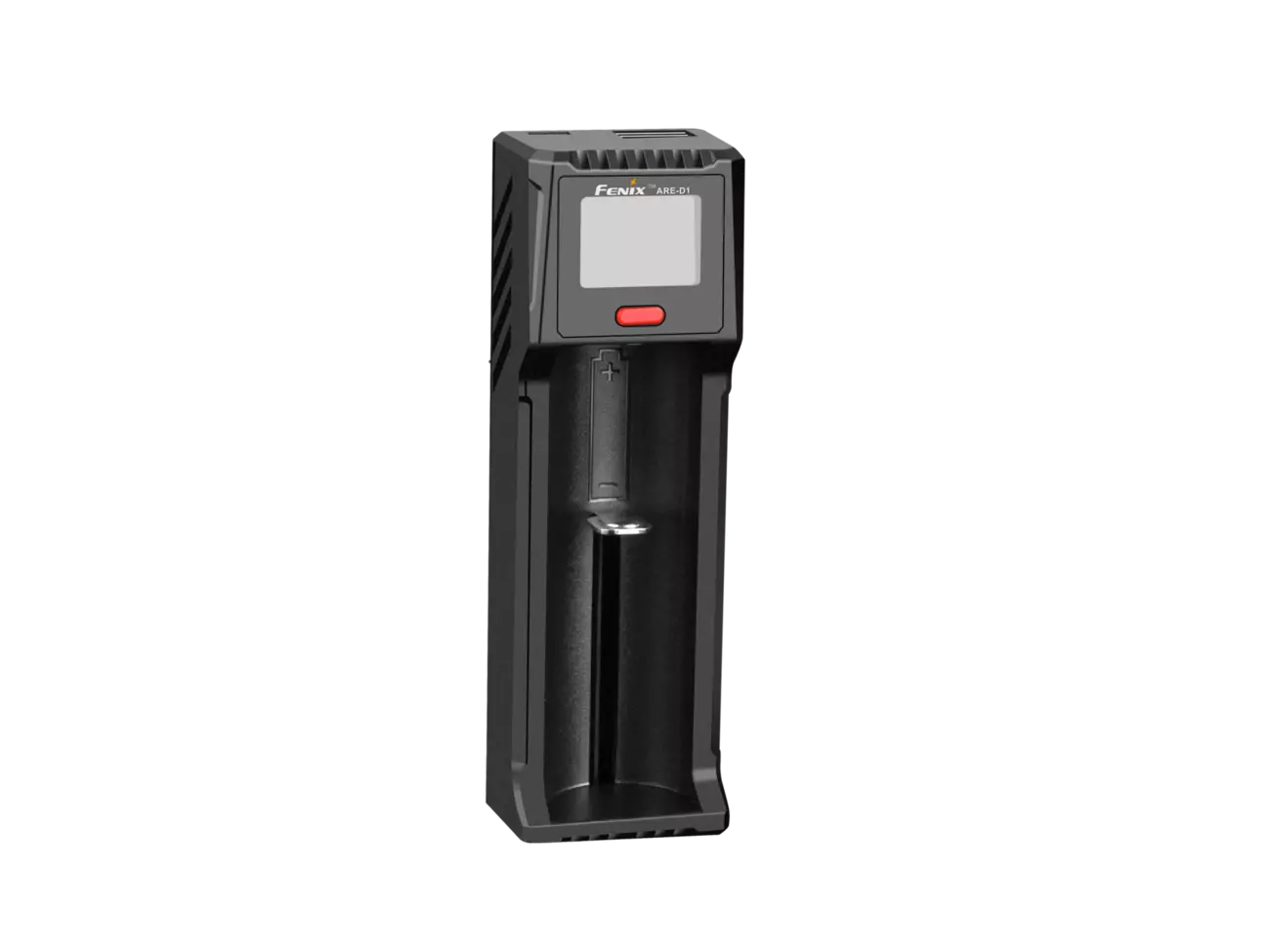 Екран зарядного пристрою Fenix ARE-D1 включається на 2 секунди після установки акумулятора і підключення до мережі. Ця модель самостійно визначить тип батареї, обере для неї відповідну програму зарядки. В результаті одноразового натискання на кнопку, на екрані циклічно будуть відображатися дані про струмі заряду, напрузі акумулятора, заряду ємності, часу зарядки. Якщо потримати кнопку натиснутою довше 2 секунд, екран вимкнеться.