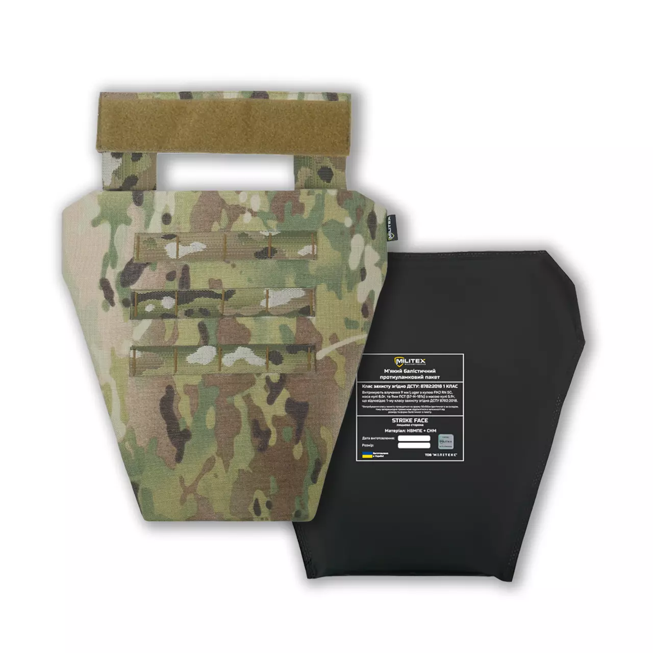 Крепление к плитоноске осуществляется с помощью велкро-панели,