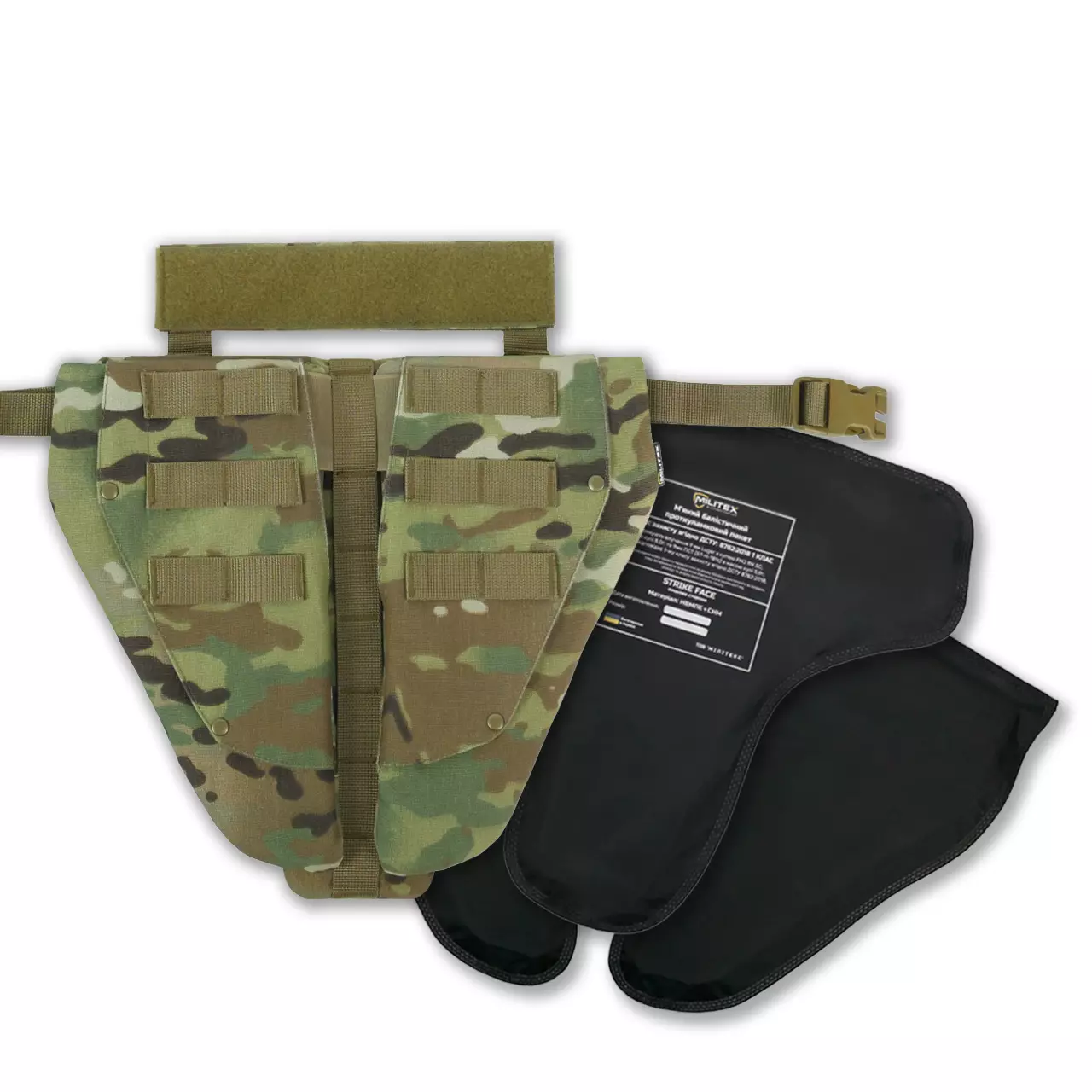 Защита паха (напашник) тройной с баллистическим пакетом 1 класс защиты Militex Multicam