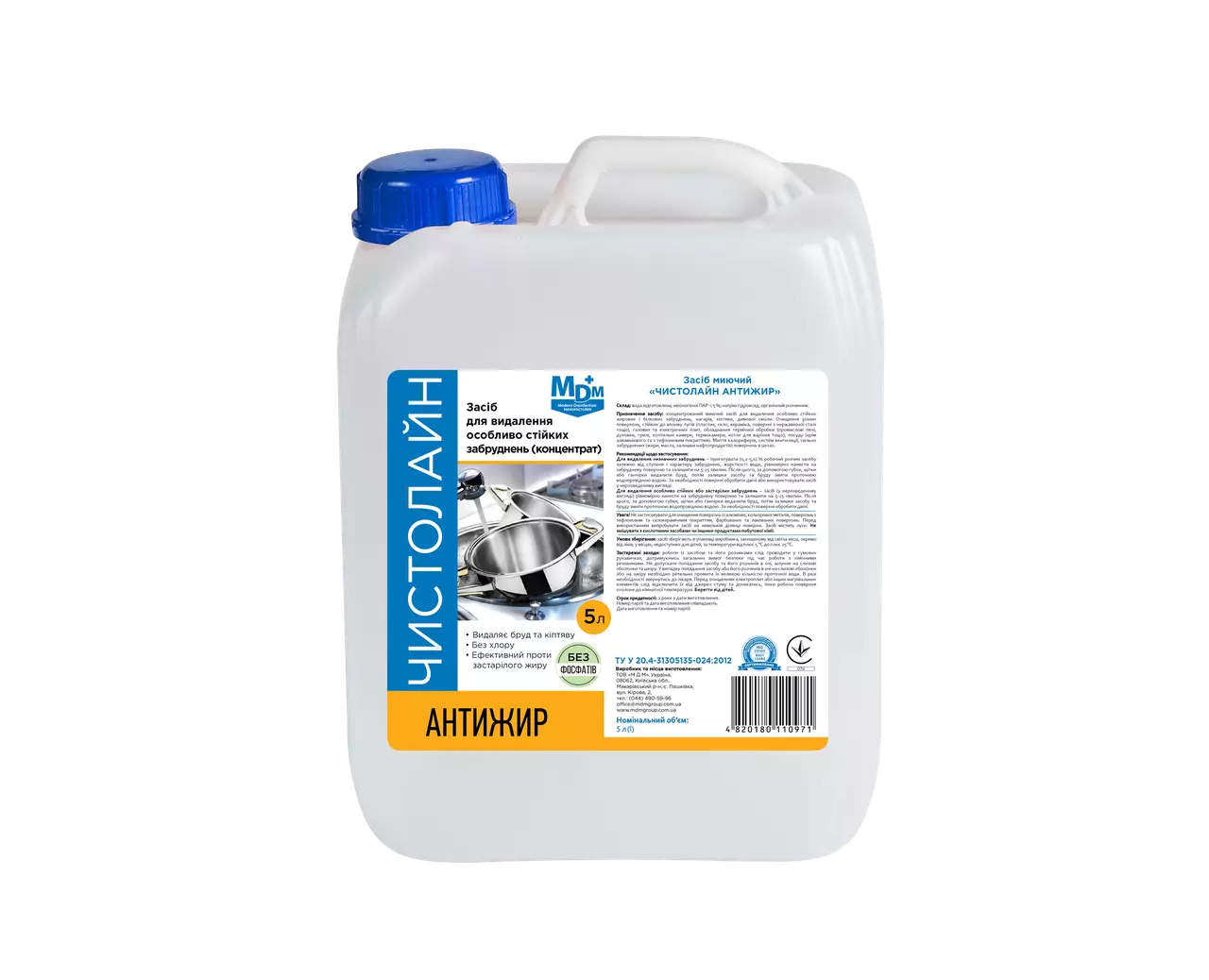 Миючий засіб «Чистолайн Антижир» — це концентрований прозорий лужний засіб із оптимальним вмістом натрію гідроксиду, органічного розчинника та неіоногенних ПАР, призначений для швидкого й ефективного видалення стійких жирових, білкових і коптильних забруднень, нагару та кіптяви з емальованих, керамічних, скляних і нержавіючих поверхонь, а також обладнання термічної обробки. Засіб не містить фосфатів і безпечний для обладнання й навколишнього середовища.