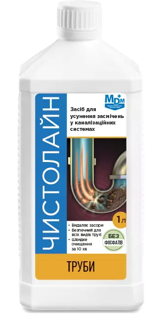 Миючий засіб «Чистолайн Труби» — це готовий до використання прозорий лужний засіб із вмістом натрію гідроксиду, натрію гіпохлориту, а також аніоногенних і неіоногенних ПАР. Призначений для швидкого й ефективного усунення засмічень у каналізаційних системах будь-якого типу, зокрема труб, раковин, ванн, душових кабін. Засіб розчиняє органічні відкладення, усуває неприємні запахи, діє швидко й безпечно для труб із різних матеріалів. Не потребує попереднього розведення.